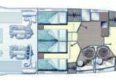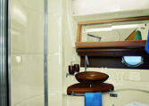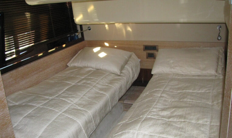 Har 3 lugarer, to med enkelt senger. På styrbord lugar kan sengene slås sammen til dobbeltseng. Har to bad.