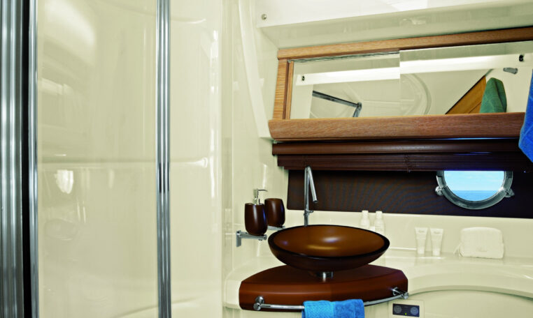 Båtene har store vindusflater med Solfilter, både i salong og i lugarene
